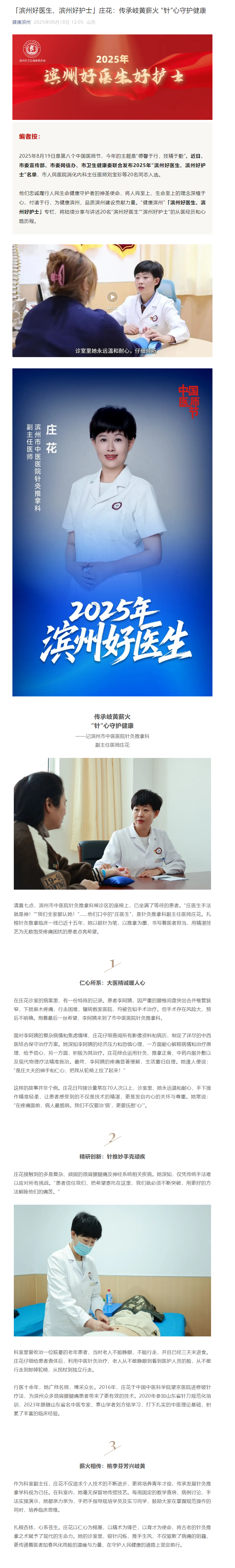 【健康滨州】「滨州好医生、滨州好护士」庄花:传承岐黄薪火 “针”心守护健康