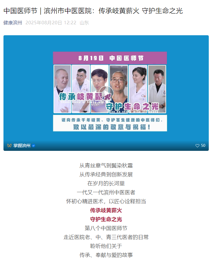 【健康滨州】中国医师节 | 滨州市中医医院:传承岐黄薪火 守护生命之光
