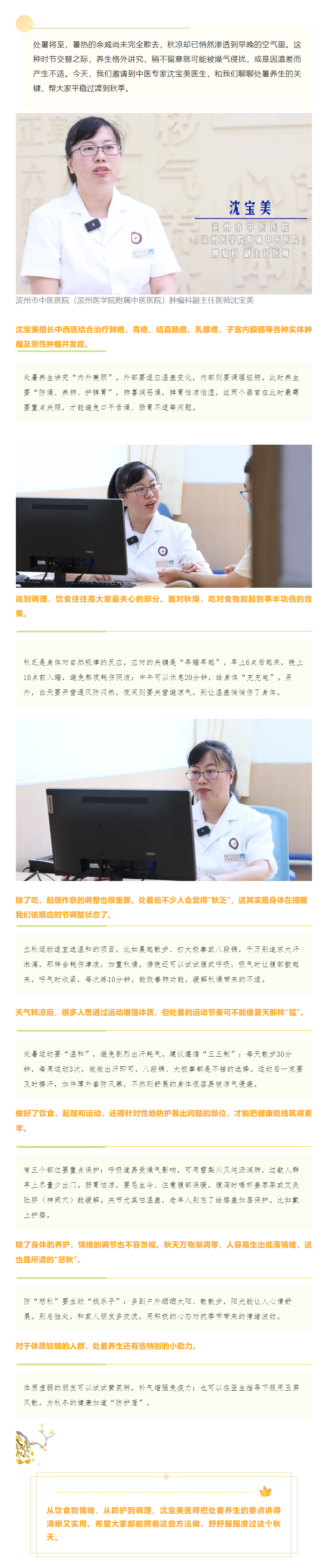 国粹中医·节气养生 | 中医说节气——处暑 滨州市中医医院(滨州医学院附属中医医院)肿瘤科副主任医师 沈宝美