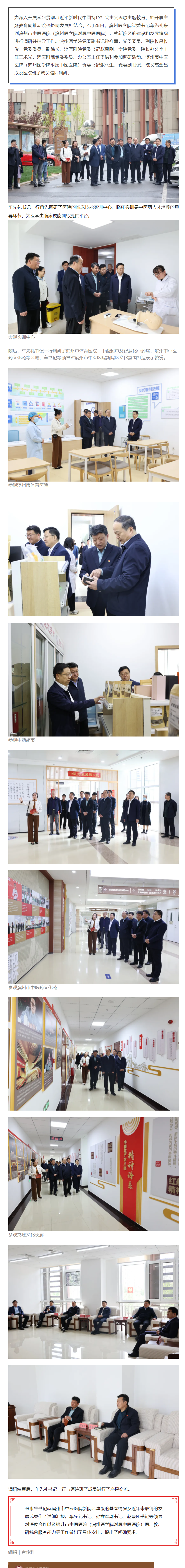 滨州医学院党委书记车先礼一行来我院调研指导工作