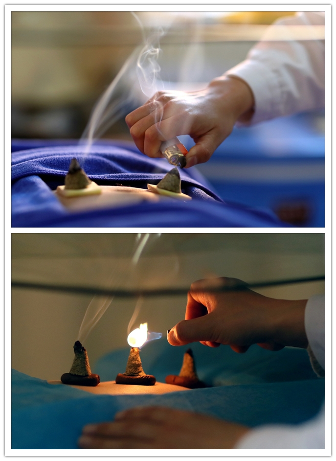 在艾柱与皮肤之间隔垫某种物品而施灸的一种方法。将选备好的间隔物置灸处,再把艾炷放在间隔物上,在艾柱尖端点燃进行施灸,以达到温通经络,调节脏腑气血功能的作用。