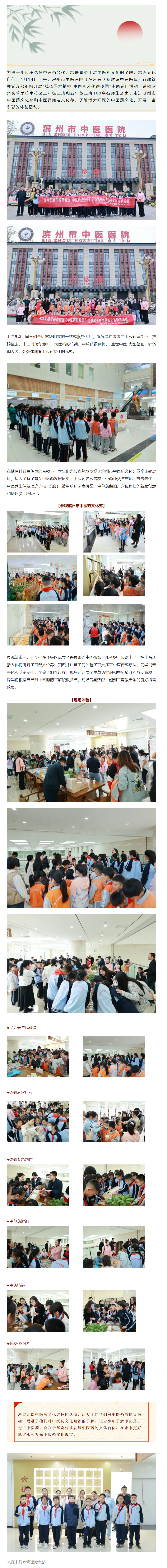 "弘扬国粹精神 中医药文化进校园" 行政管理党支部党员在行动——滨州实验学校南校区100 余名师生及家长参观滨州市中医药文化苑