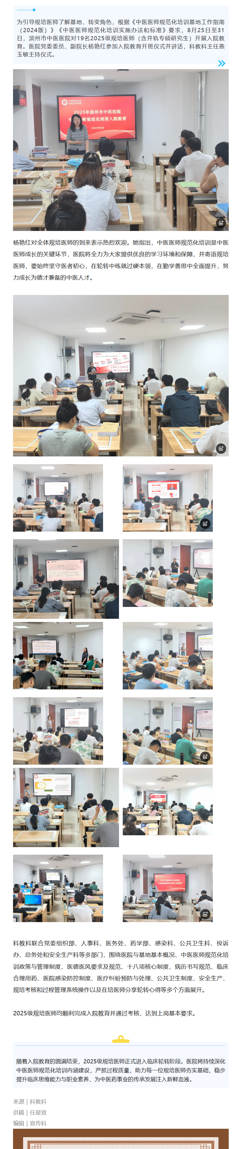 滨州市中医医院顺利完成2025级规培医师入院教育