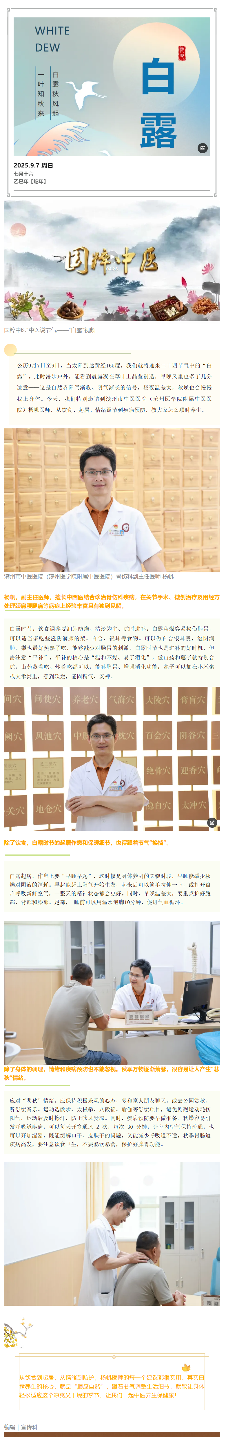 国粹中医·节气养生 | 中医说节气——白露 滨州市中医医院(滨州医学院附属中医医院)骨伤科副主任医师 杨帆