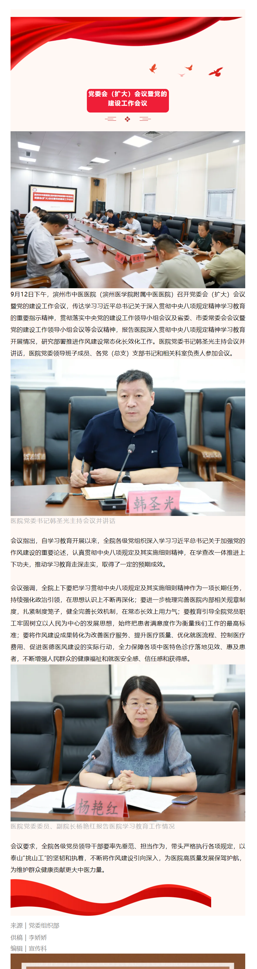 滨州市中医医院(滨州医学院附属中医医院)召开党委会(扩大)会议暨党的建设工作会议