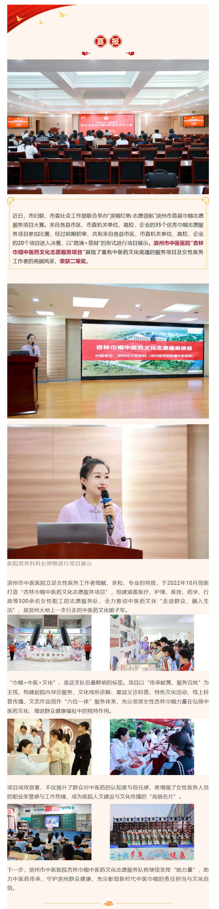 喜报 | 滨州市中医医院在滨州市首届巾帼志愿服务项目大赛荣获二等奖