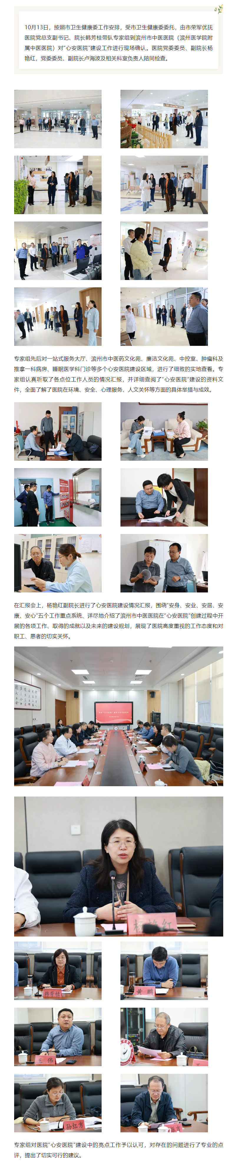 滨州市中医医院迎接“心安医院”建设现场确认