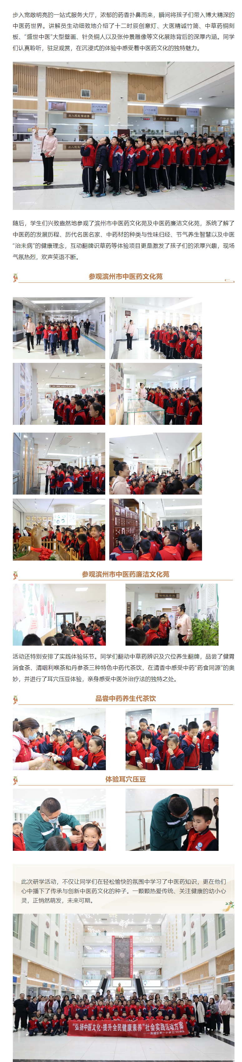 滨城区第一小学学生来滨州市中医医院(滨州医学院附属中医医院)参观滨州市中医药文化苑