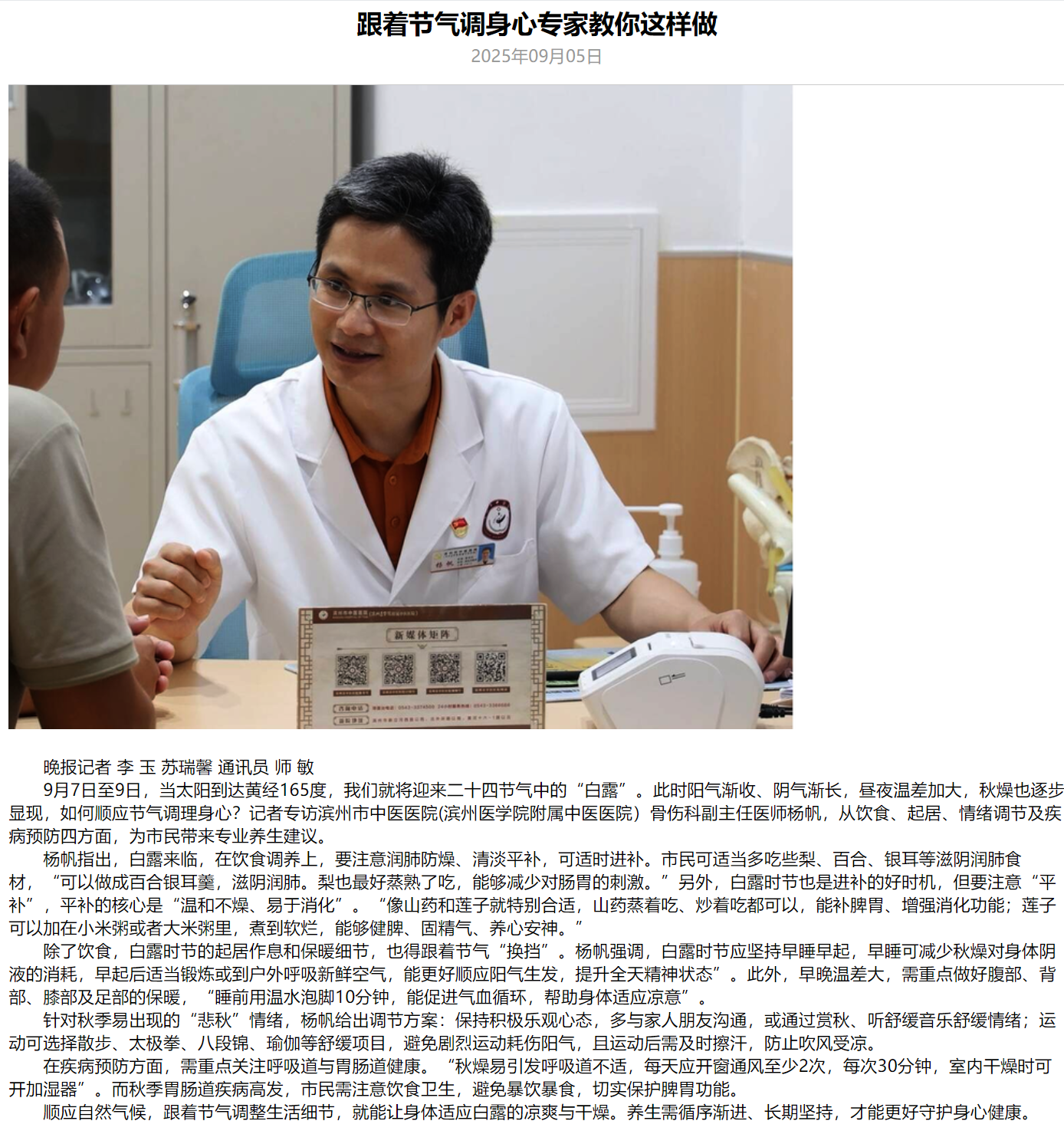 【鲁北晚报】跟着节气调身心专家教你这样做