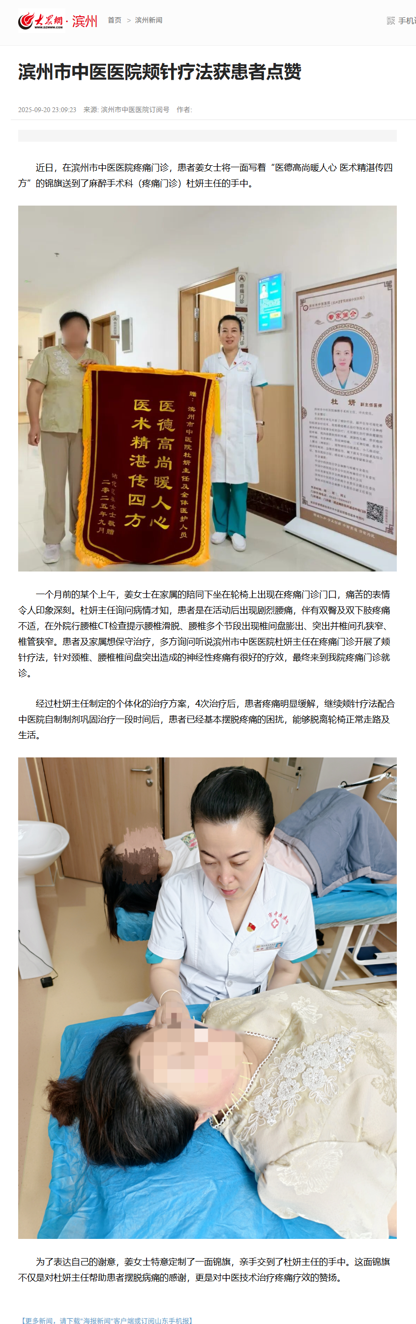 【大众网】滨州市中医医院颊针疗法获患者点赞