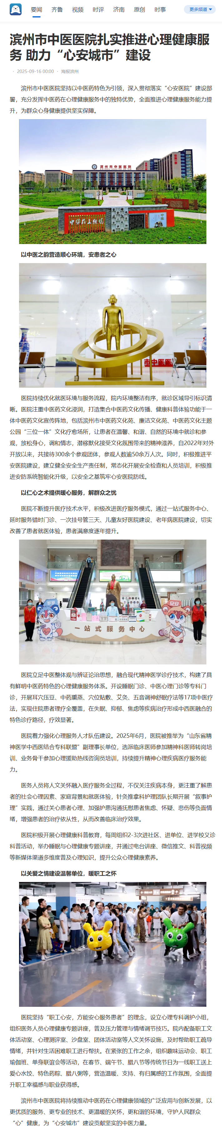 【海报新闻】滨州市中医医院扎实推进心理健康服务 助力“心安城市”建设