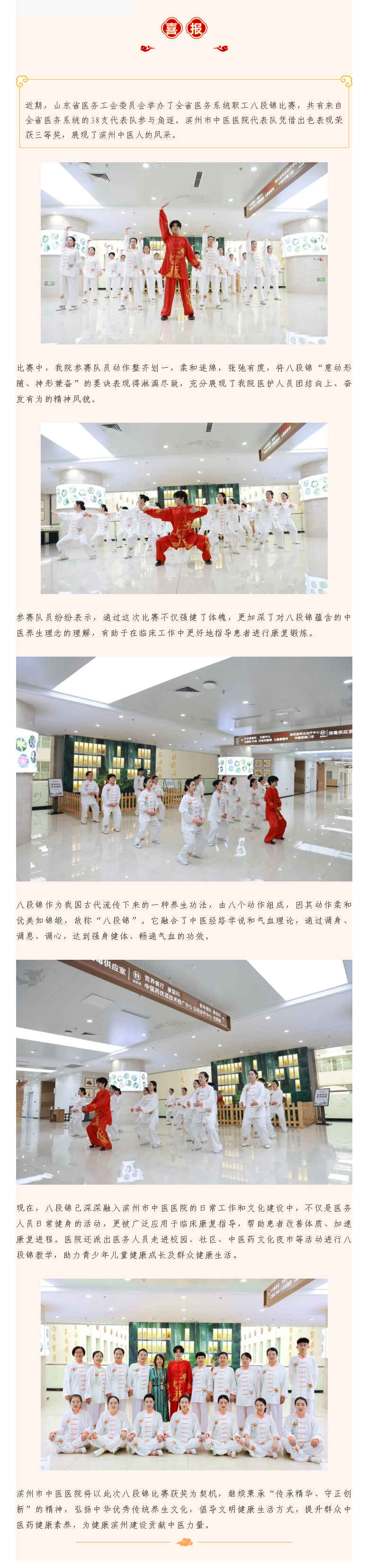 喜报 | 滨州市中医医院在全省医务系统职工八段锦比赛中荣获三等奖