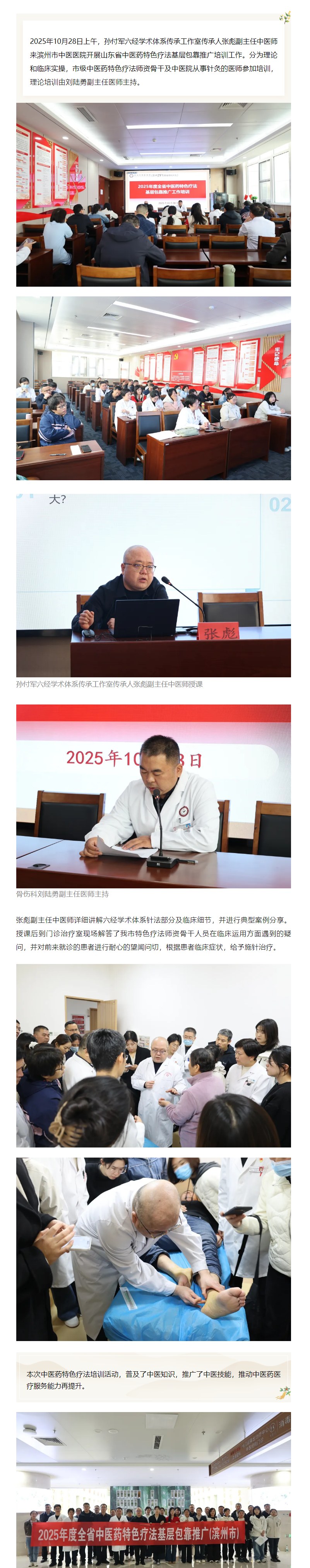 孙付军六经学术体系传承工作室传承人张彪副主任中医师来滨州市中医医院开展山东省中医药特色疗法基层包靠推广培训工作