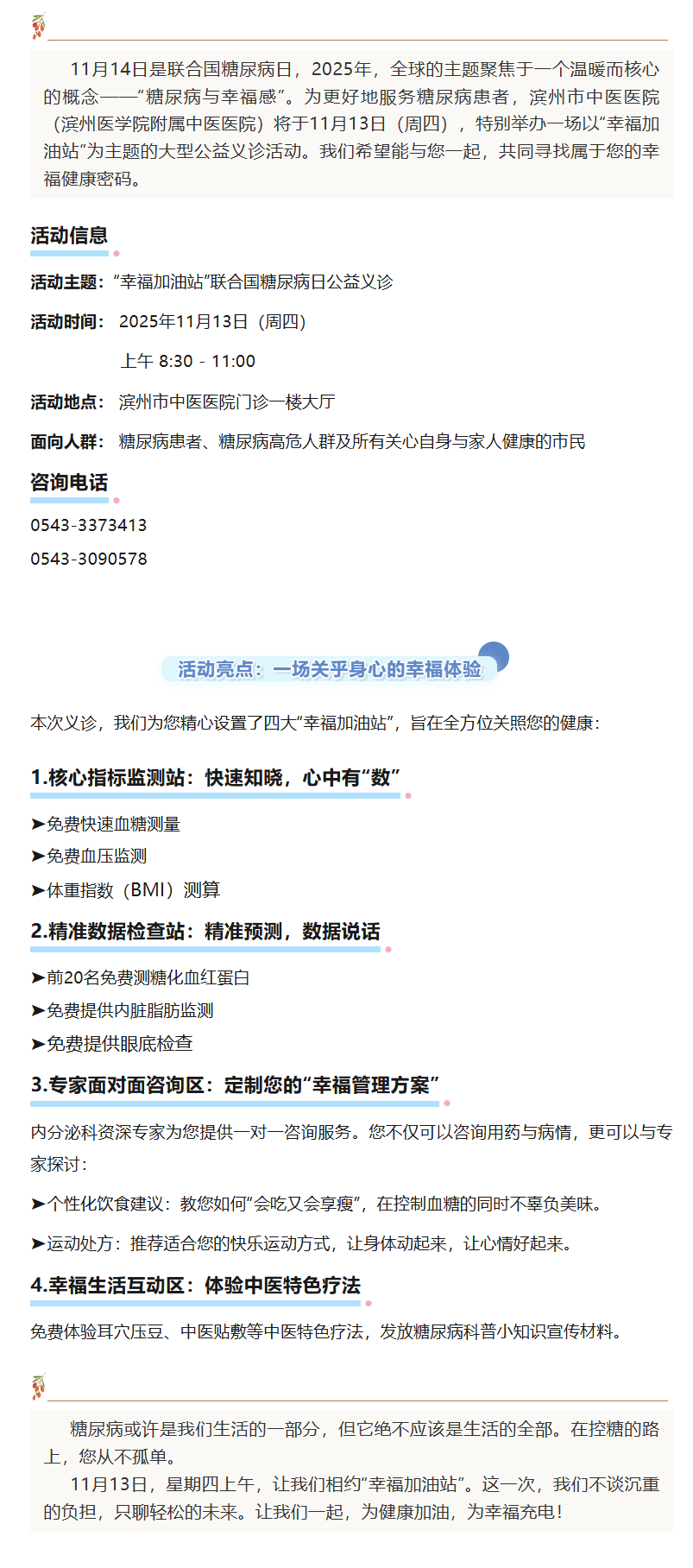 不止是控糖,更是拥抱幸福——2025年联合国糖尿病日“幸福加油站”公益义诊预告