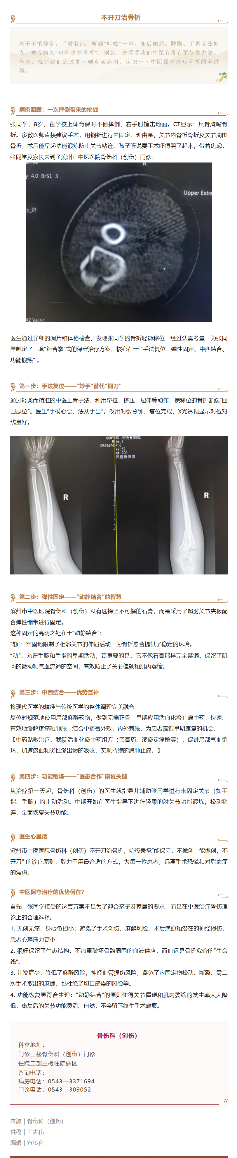 滨州市中医医院骨伤科(创伤)不开刀治骨折——记一例尺骨鹰嘴骨折的保守治疗