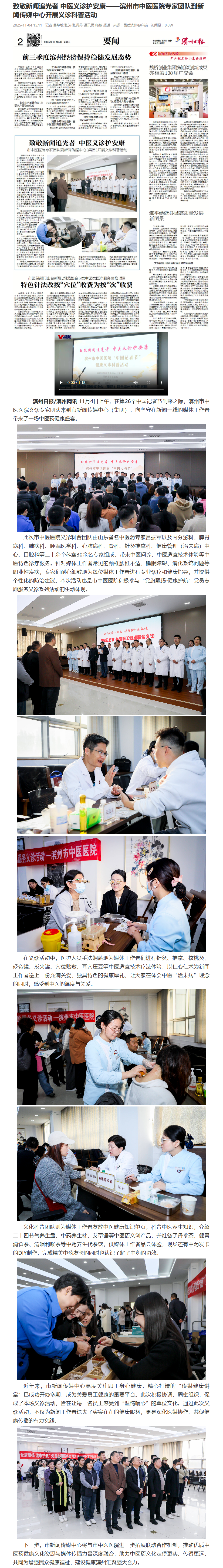 【滨州日报】致敬新闻追光者 中医义诊护安康——滨州市中医医院专家团队到新闻传媒中心开展义诊科普活动