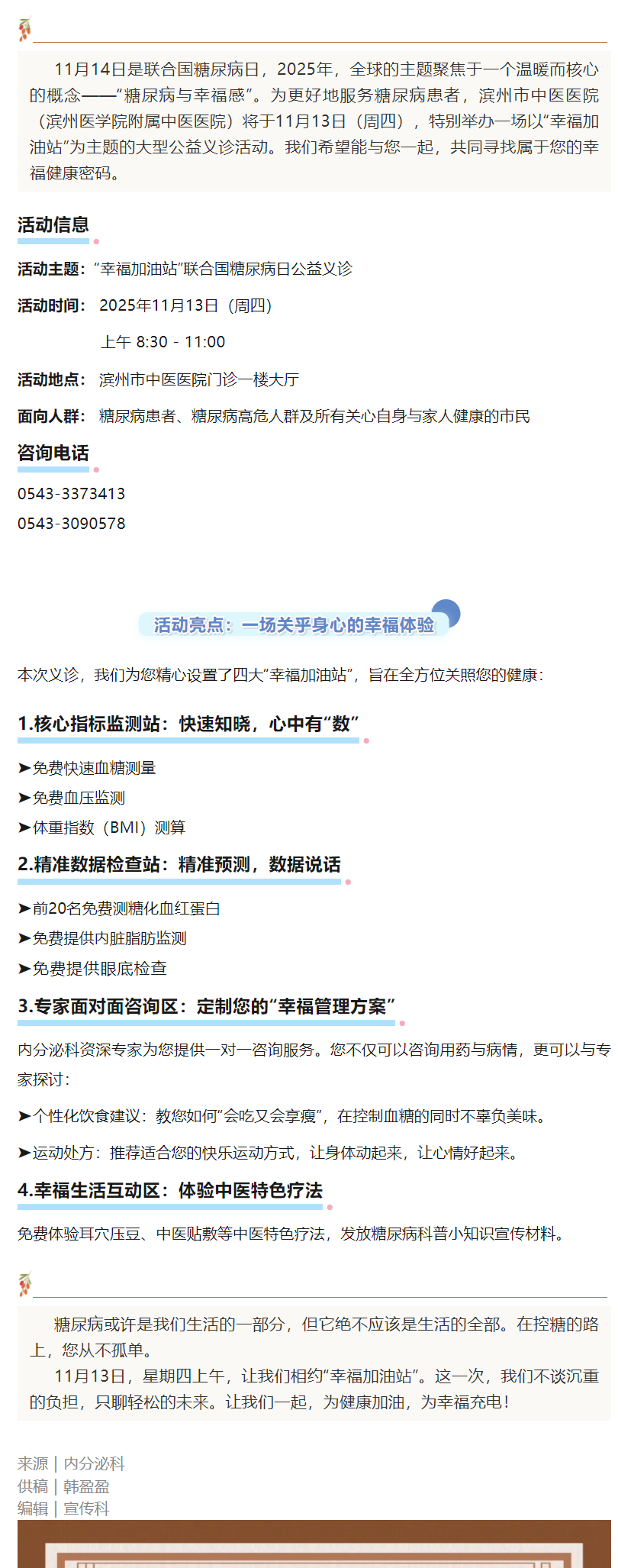 不止是控糖,更是拥抱幸福——2025年联合国糖尿病日“幸福加油站”公益义诊预告