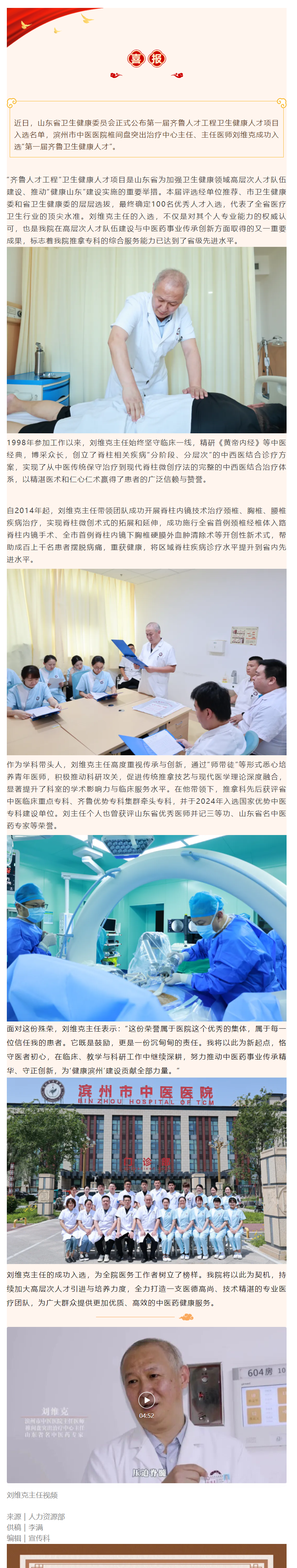 喜报 | 滨州市中医医院刘维克主任成功入选“第一届齐鲁卫生健康人才”