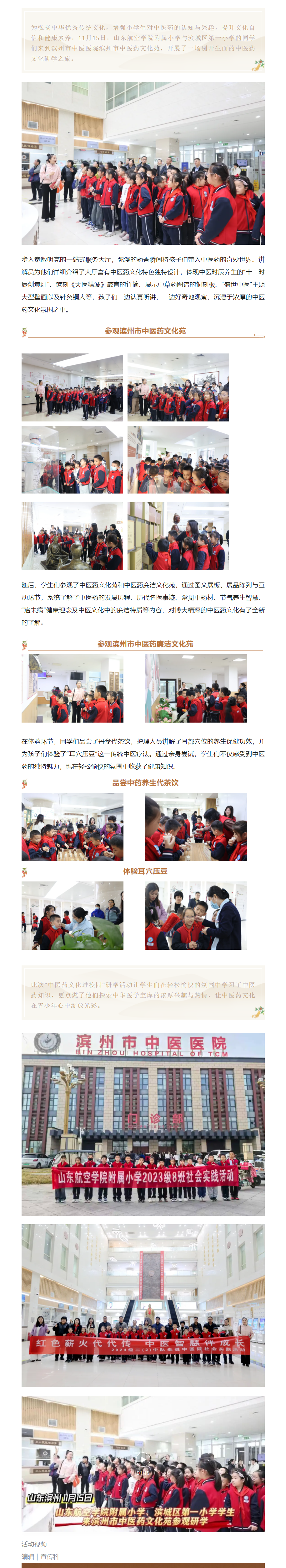 山东航空学院附属小学、滨城区第一小学学生来我院滨州市中医药文化苑参观研学