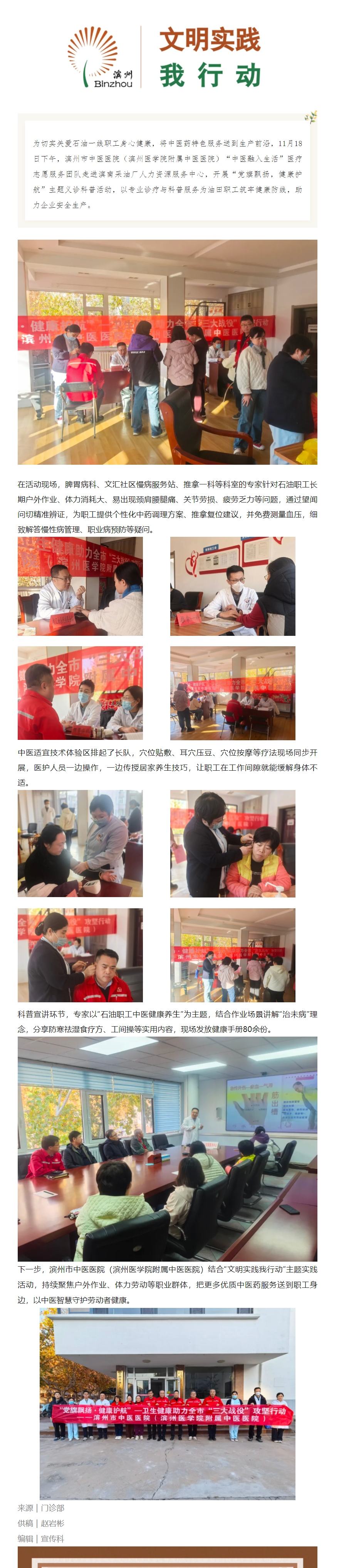 中医融入生活 | 滨州市中医医院走进滨南采油厂人力资源服务中心开展义诊科普活动