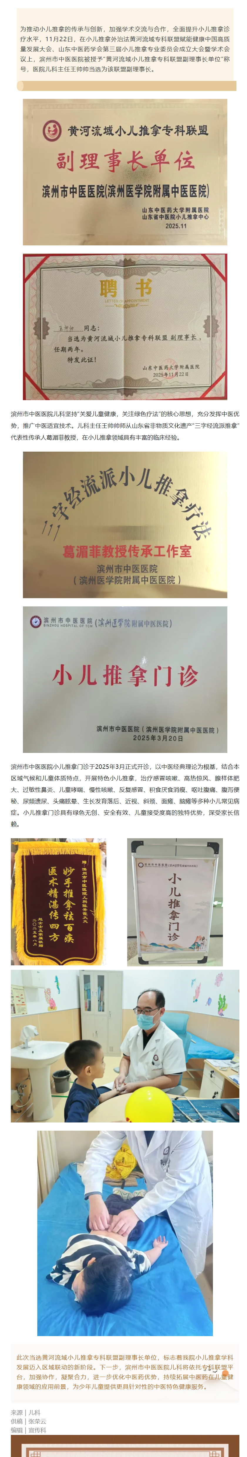 喜讯 | 滨州市中医医院儿科获评“黄河流域小儿推拿专科联盟副理事长单位”