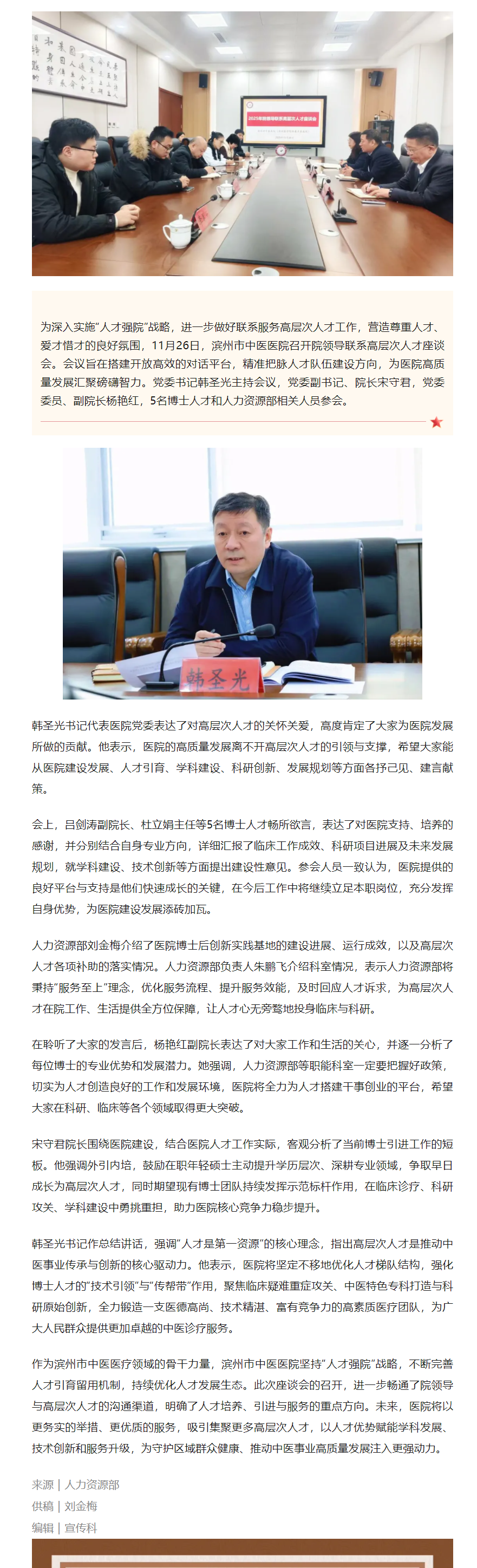 滨州市中医医院召开2025年院领导联系高层次人才座谈会