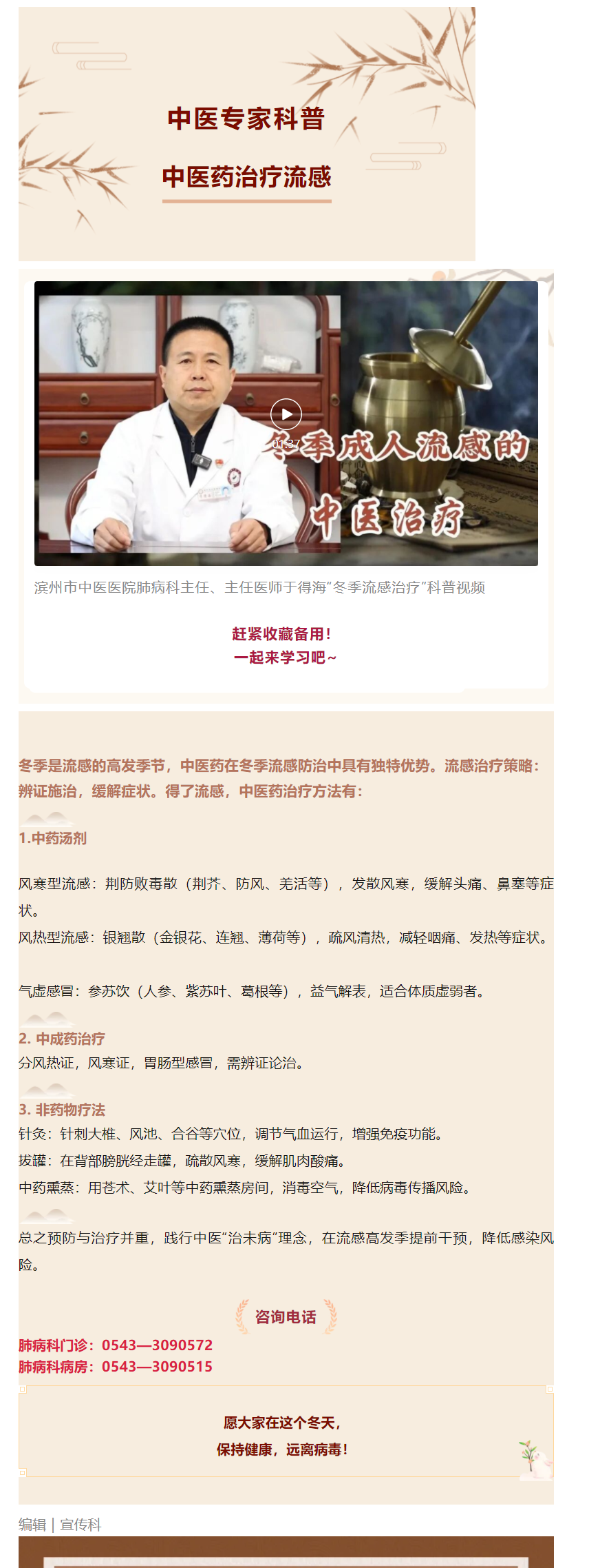冬季“中招”流感?滨州市中医医院专家于得海主任医师科普中医药治疗流感