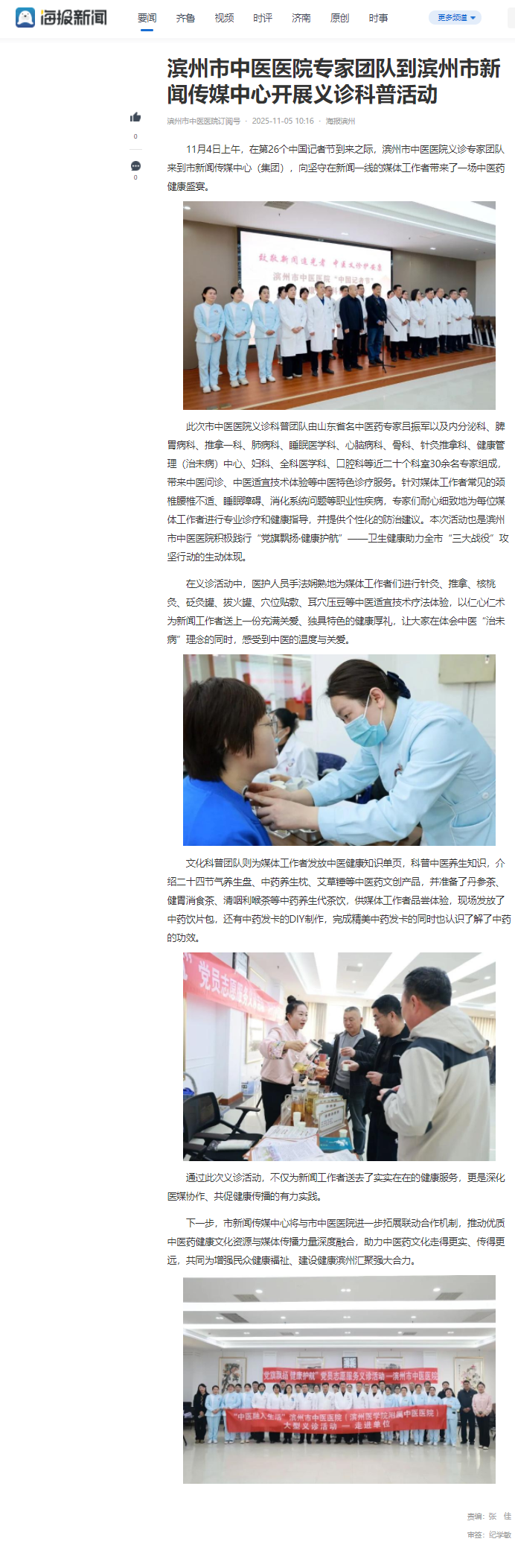 【海报新闻】滨州市中医医院专家团队到滨州市新闻传媒中心开展义诊科普活动