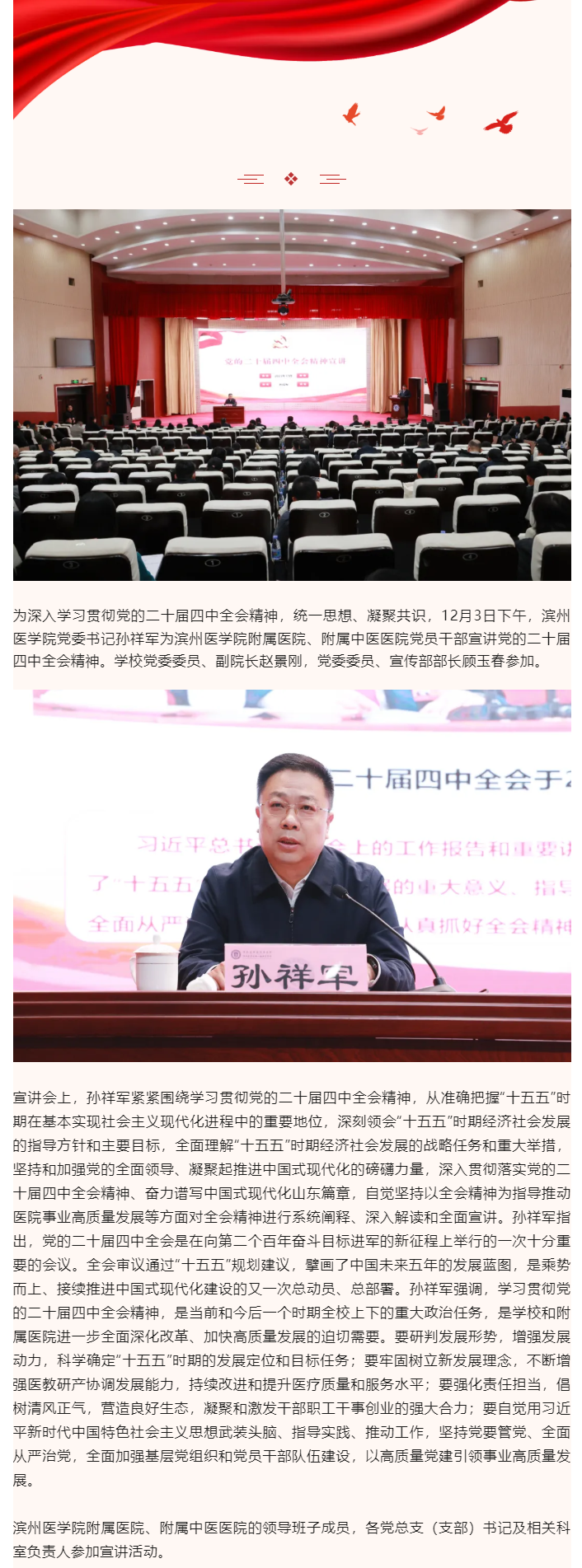 滨州医学院党委书记孙祥军到附属医院宣讲党的二十届四中全会精神