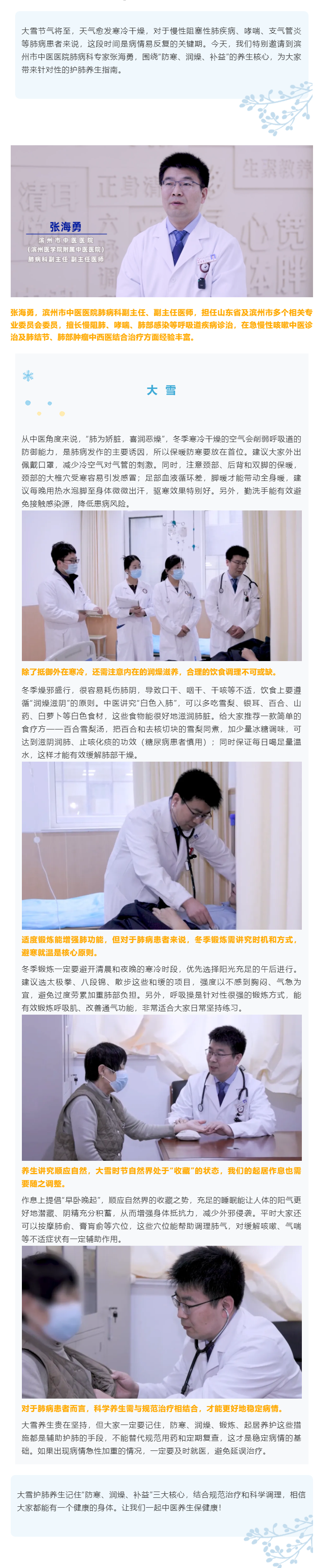 国粹中医·节气养生 | 中医说节气——大雪 滨州市中医医院(滨州医学院附属中医医院)肺病科副主任、副主任医师 张海勇