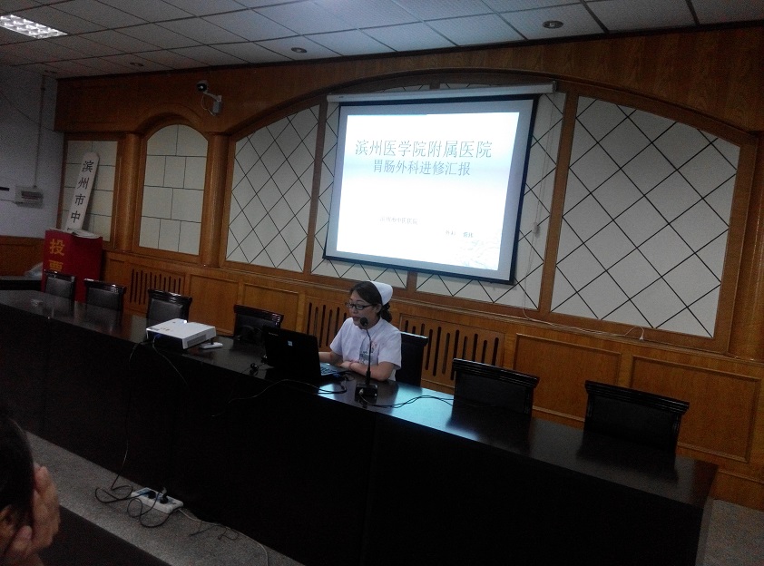 进修人员生动地向我院护士讲解了此次进修学习的经历,把在滨医附院学习的内容、亮点、值得借鉴的地方以PPT的形式进行了展示,围绕科室规范化护理管理、优质护理服务、专科急救技术等方面进行了汇报,并对照我院现状,寻找差距,畅谈进修感言,畅想医院发展。
