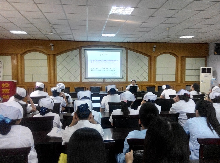 2016年9月12日,护理部在门诊楼四楼学术厅组织召开了赴滨医附院进修护理人员学习成果汇报会,分管院长杨艳红、护理部及全院护士参加了此次汇报会。