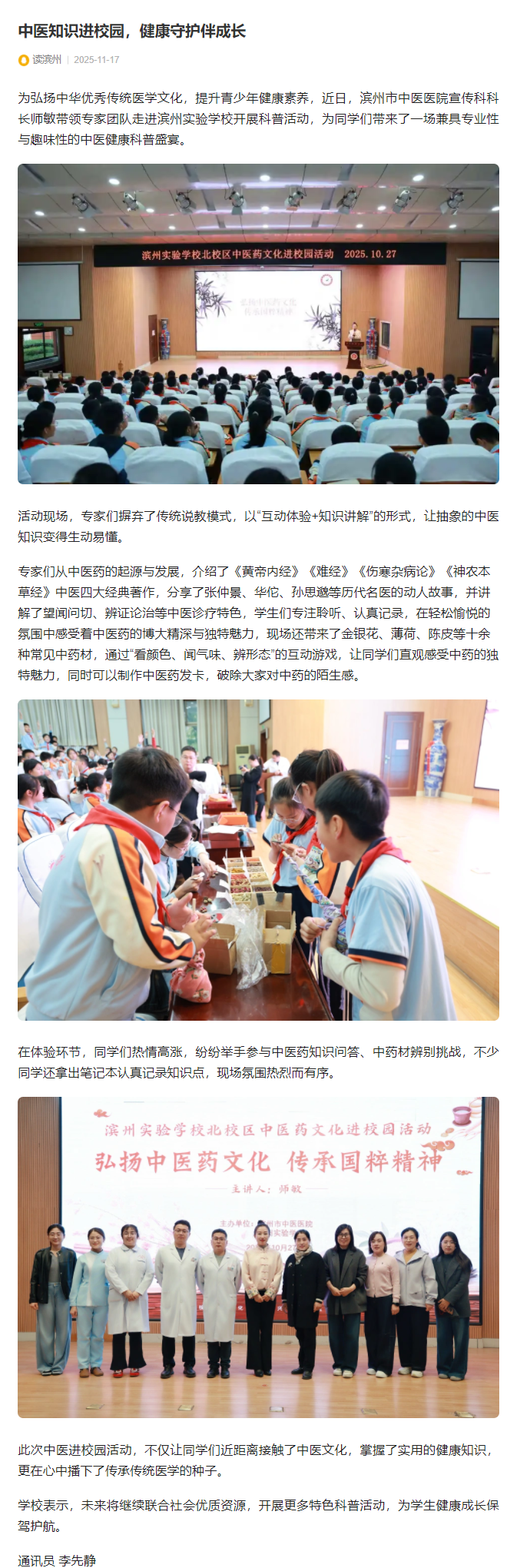 【读滨州】中医知识进校园,健康守护伴成长