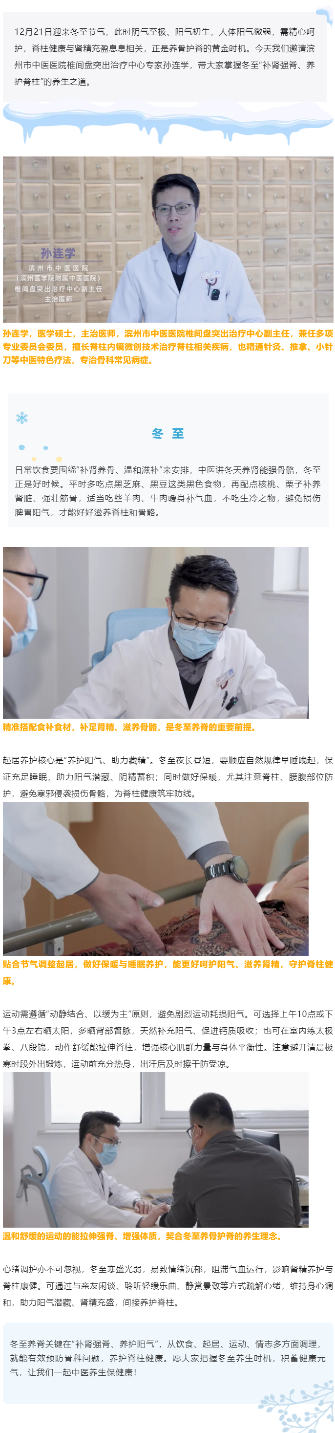 国粹中医·节气养生 | 中医说节气——冬至 滨州市中医医院(滨州医学院附属中医医院)椎间盘突出治疗中心副主任、主治医师 孙连学