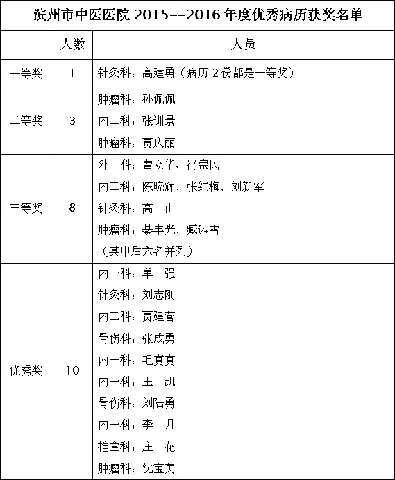 为了进一步强化我院医疗核心制度的执行力,规范和提高我院医师病历书写水平,2016年9月20日,我院医务处组织专家评审自小组对滨州市中医医院2015--2016年度优秀病历进行现场审核评选,专家小组采取科室病历交叉评审的方式进行,本次优秀病历评选活动共收集到来自医院各临床科室推荐的73份病历,评选出优秀病历23份。