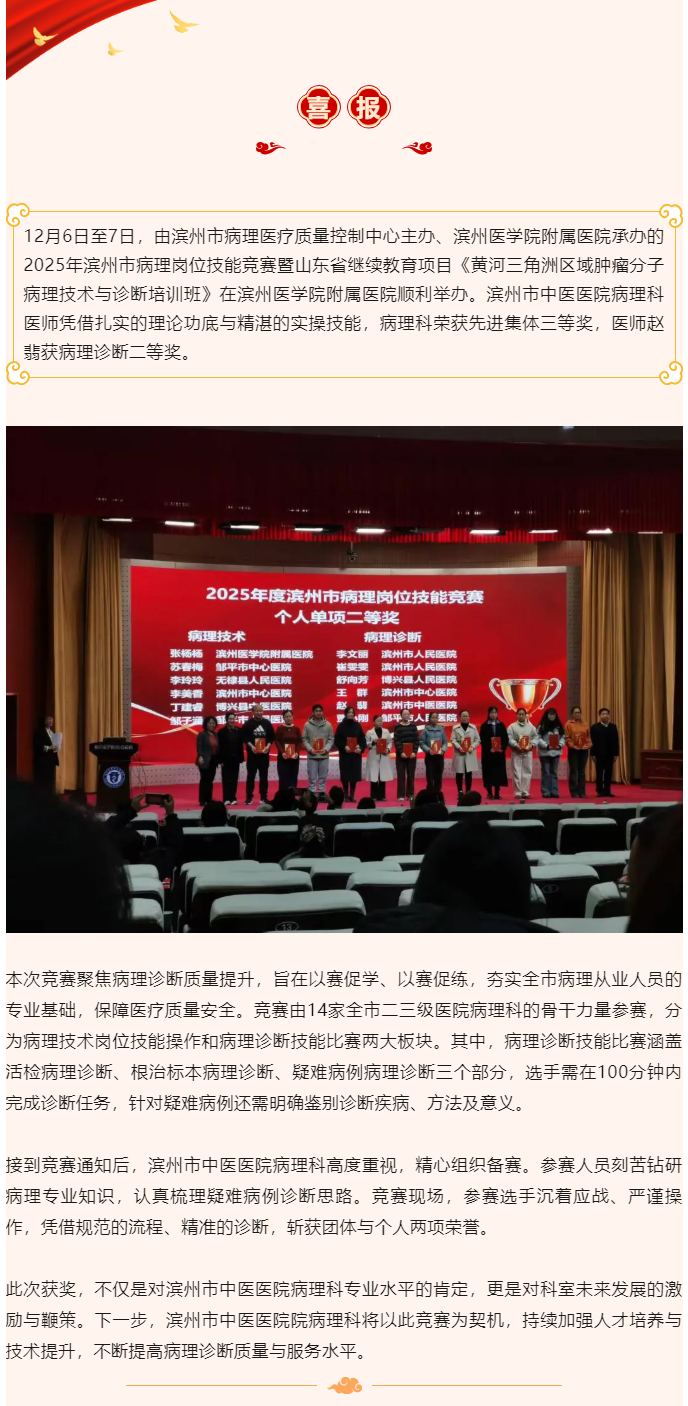 喜报 | 滨州市中医医院(滨州医学院附属中医医院)病理科医师获滨州市病理岗位技能竞赛病理诊断二等奖