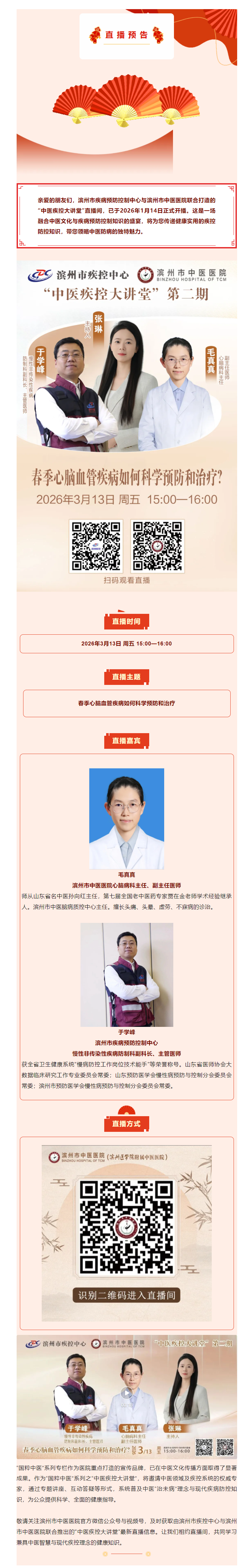 直播预告 | “中医疾控大讲堂”第二期——春季心脑血管疾病如何科学预防和治疗