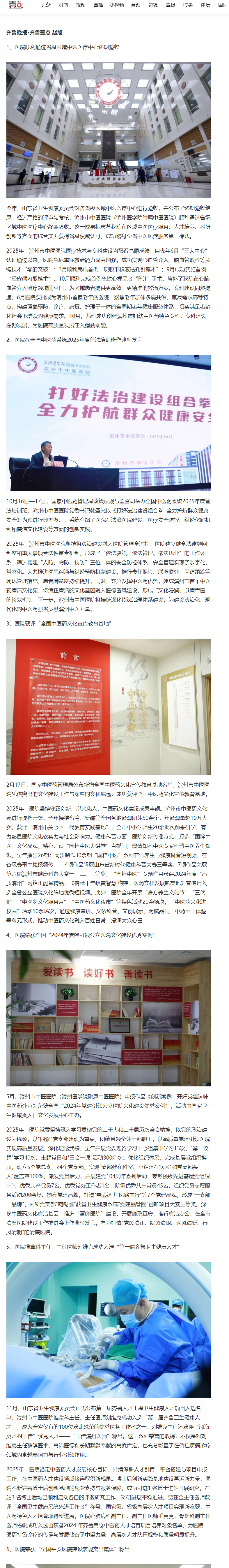【大众报业 齐鲁壹点】2025年度滨州市中医医院十大新闻