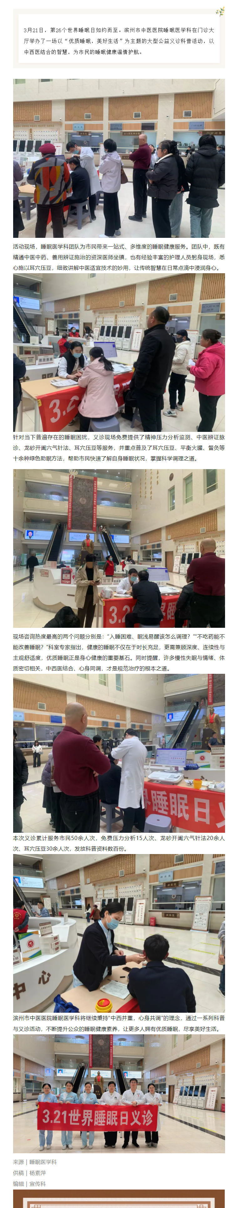 优质睡眠 美好生活——滨州市中医医院成功举办世界睡眠日公益义诊科普活动