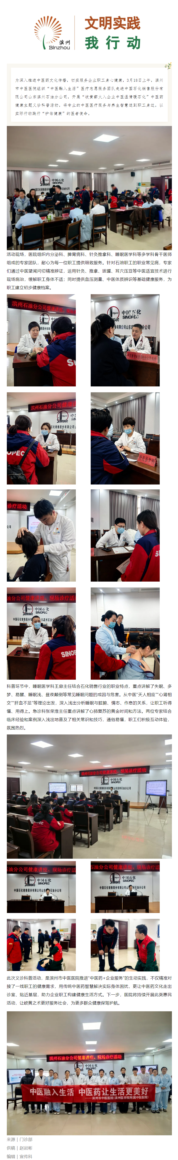 中医融入生活|滨州市中医医院走进中国石化销售股份有限公司山东滨州石油分公司开展义诊科普活动