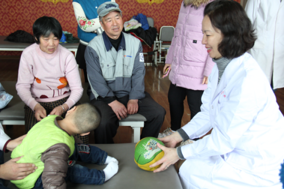 李丽教授参观康复保健诊疗中心的设备,对康复保健患者进行指导训练