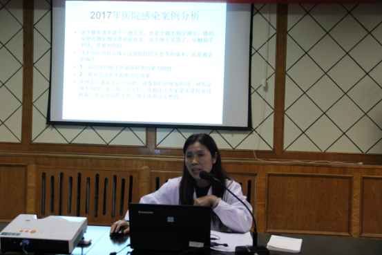 首先,院感科张立英主任通过浙江、青岛的两起医院感染事件说明了医院感染管理工作规范化、标准化管理的重要性,要求医务人员遵守规则,敬畏生命,并严肃表示2017年将结合我院的实际情况,把对新标准的学习、贯彻、落实纳入医院的院感工作中。我们将通过不定期集中培训、科室培训、知识考核等多种形式来提高医务人员的院感知识水平,帮助大家正确理解、掌握标准并正确落实于实践工作中。