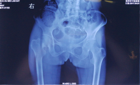 患者许某,女,64岁,因骑电车不慎翻车导致右髋部疼痛肿胀,活动受限。来我院进行就诊,医生对其进行了各项化验检查,确定为右股骨颈骨折入院。入院后,为了保障患者早日恢复肢体功能,我院骨伤科专家开会研究,决定对患者施行右侧人工股骨头置换手术。