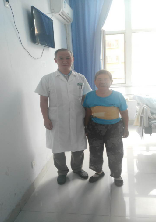 经过细致周全的术前准备,在局麻下为该患者实施脊柱内镜下T10/11胸椎减压术,术中通过高速旋转的动力磨钻系统进行病椎椎板直接磨除,并切除和取出胸椎增生及钙化的黄韧带组织。手术历经2个小时成功结束,患者随即感觉疼痛减轻。第二天病人即可直立下地行走,患者及家属对手术立竿见影的效果表示十分满意。