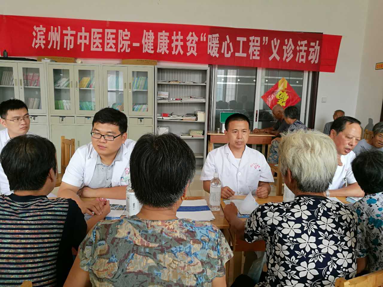为进一步推动我市“中医中药中国行—中医药健康文化推进行动”相关活动的开展,深入贯彻落实我市脱贫攻坚推进会议精神,做好健康扶贫各项工作,关爱贫困群众身体健康,在全市营造中医药事业发展的良好氛围,2017年9月18日,滨州市中医医院杨艳红副院长带队组织内分泌科、脾胃病科、干部保健科、骨伤科、推拿科、针灸科等科室专家团队19人到无棣县小泊头镇贫困村郭马村、梁郑王村、乔家庄村进行了健康扶贫“暖心工程”大型义诊活动,让广大农民足不出户便可享受三级医院专家的免费诊疗活动。