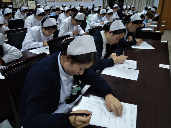 今年的护士考核工作实用性强,涉及范围广,共164名护士参加了培训考核,考核分为理论考核与技能考核两部分,理论考核采取闭卷考试形式,技能考核采用抽签分组的方式进行。