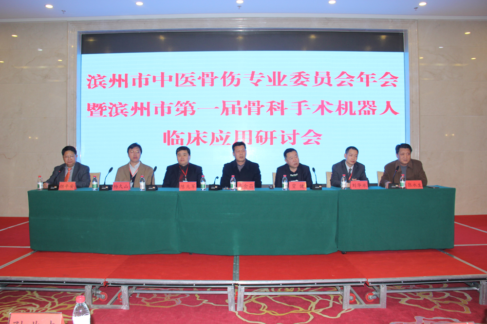 为进一步促进我市中医骨伤科事业的健康发展,不断提高我市中医骨伤科疾病的诊疗水平,2017年12月3日,由我院骨伤科主办的2017年度滨州市中医骨伤专业委员会年会暨滨州市第一届骨科手术机器人临床应用研讨会在中海酒店召开,市中医药管理局副局长高金昌同志,我院院长张永生同志出席了会议,并为天玑骨科机器人应用中心揭牌。