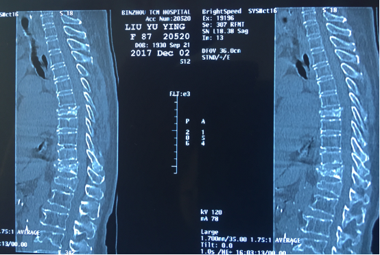 87岁的患者刘女士因腰背部疼痛剧烈,翻身活动困难而入院。入院前,刘女士及其家人四处求医问药,于外院诊断为陈旧性的腰椎椎体压缩骨折,由于患者年龄较大、手术风险较高,嘱其卧床休息,未给予特殊处理。入院后,刘维克主任对患者进行了详尽的检查,发现病位是胸椎7、10节段的新发椎体压缩骨折,如不进行手术干预,患者将遭受更长时间的痛苦。我院脊柱外科考虑该患者已87岁高龄,既往患有高血压、支气管炎、肺栓塞、心房颤动等基础疾病较多,刘维克主任及其团队经过反复论证,为患者设计了微创而高效的手术方案。