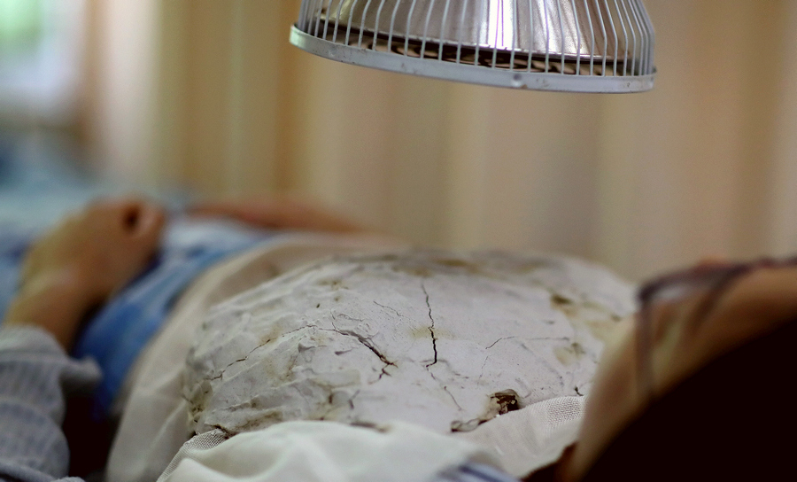 乳腺中药膏疗是应用檀香粉、香附粉、紫苏叶粉、吴茱萸粉等中药加入温水将药膜调制软硬适中,敷于胸部,石膏覆盖包裹住药膜。并用红外线烤灯进行加热。通过药物的作用,达到疏通乳络、消肿散结、缓解疼痛、改善腺体增生为目的的一种技术操作。
