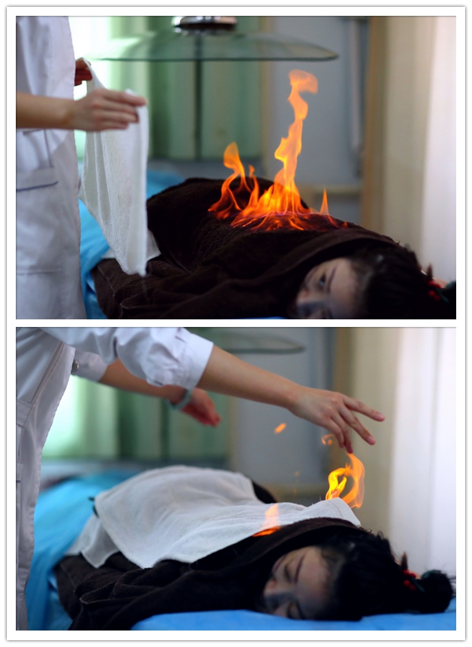 火疗是利用乙醇点燃产生的温热作用与中药疗法有机结合,达到疏通经络气血的功用。火疗与药物作用于患部,能够加温改善局部血液循环,使药物直接渗入深部组织,促进淋巴和血液的运行,具有快速调理和辅助调理疾病的神奇功效,能够调理整个神经系统,有效的激活体内细胞,达到行气通经,活血通络的作用。对人体进行扶正祛邪,平衡阴阳,防治疾病,保健康复的理疗方法。